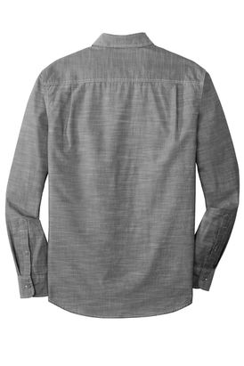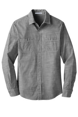 Washed chambray and off-white contrast stitching give this garment washed casual shirt an authentic, laid-back look.